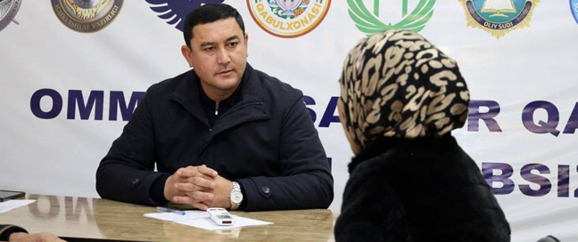 Сурхондарё вилоятидаги Музработ туман ҳокими Абдулла Маматқулов туман Халқ қабулхонасида аҳоли мурожаатларини тинглаб, улар ўртага ташлаган масалаларга ечим излади.